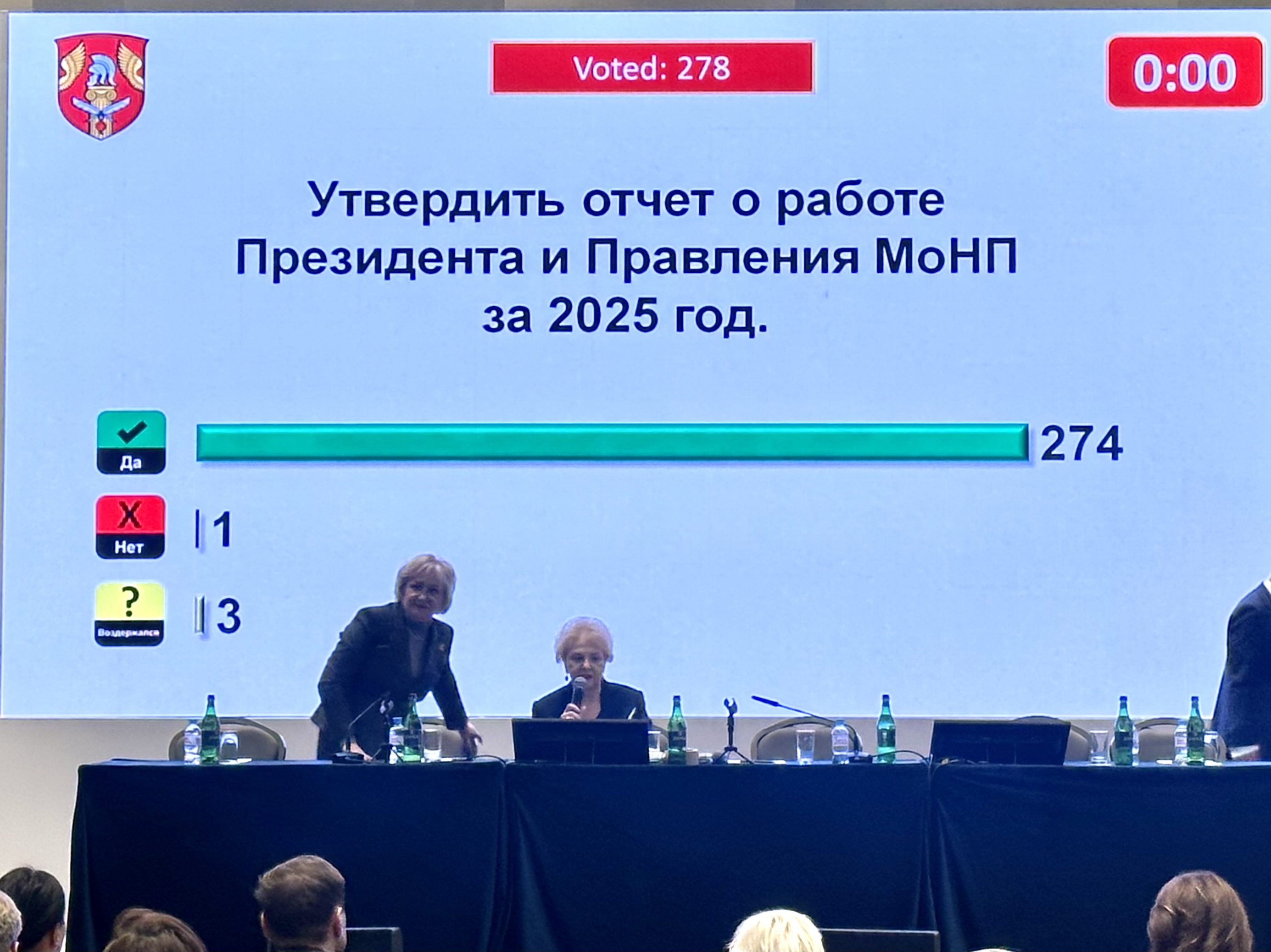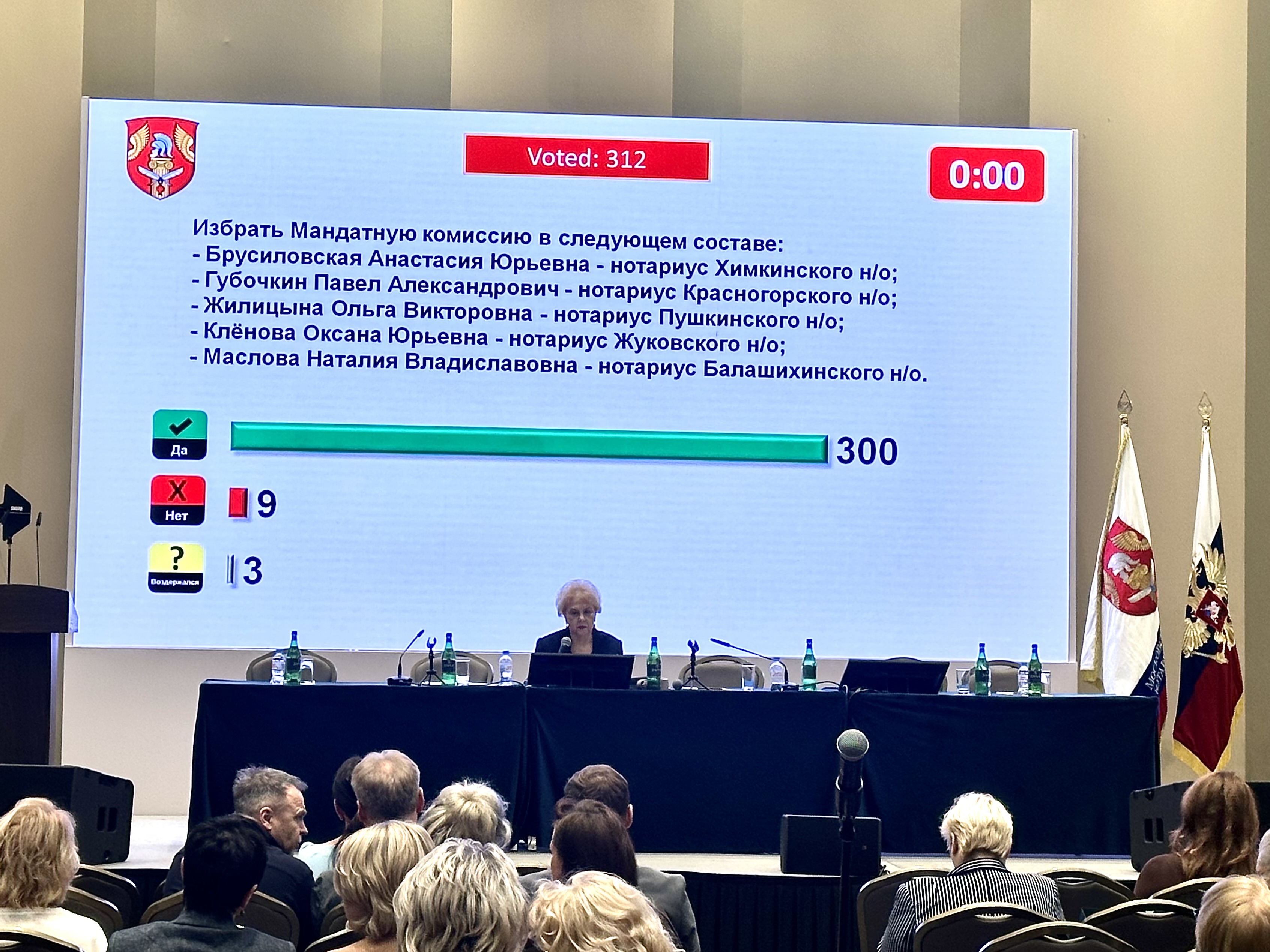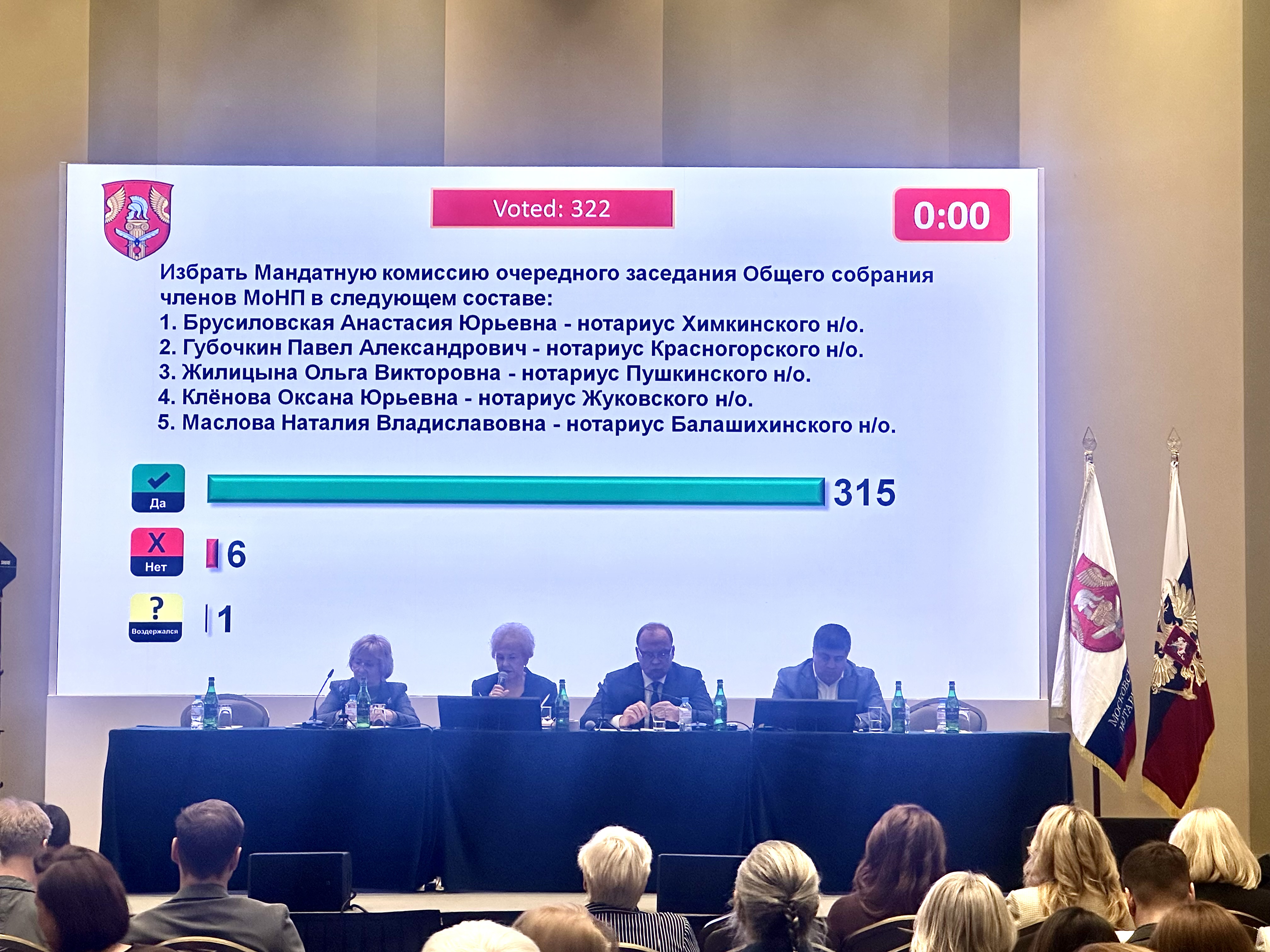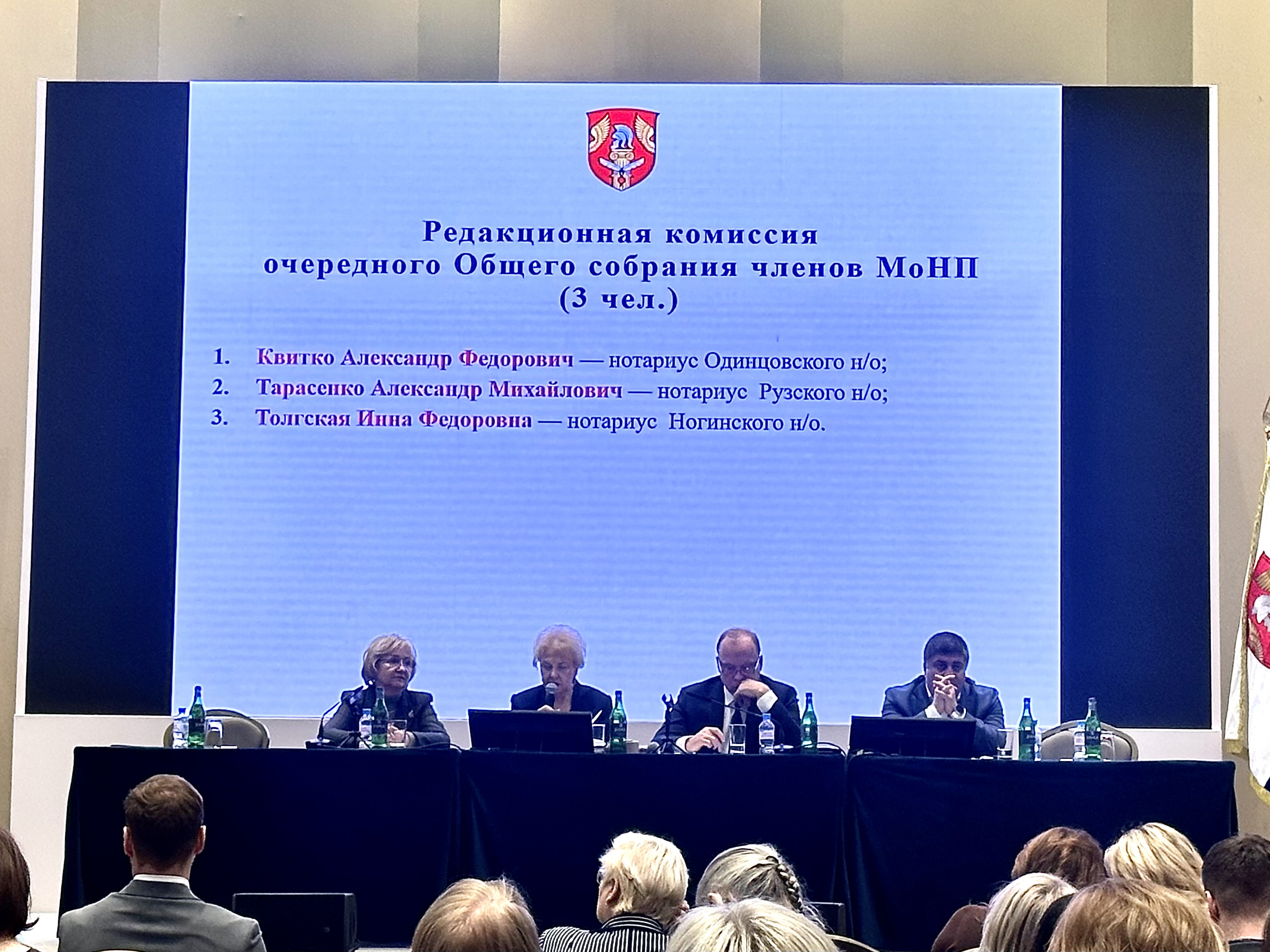 На Общем собрании нотариусов была избрана мандатная комиссия, утверждены отчет о работе Президента и Правления МоНП за 2025 год, отчет об исполнении сметы доходов и расходов МоНП за 2025 год и Акт Ревизионной комиссии за 2025 год.