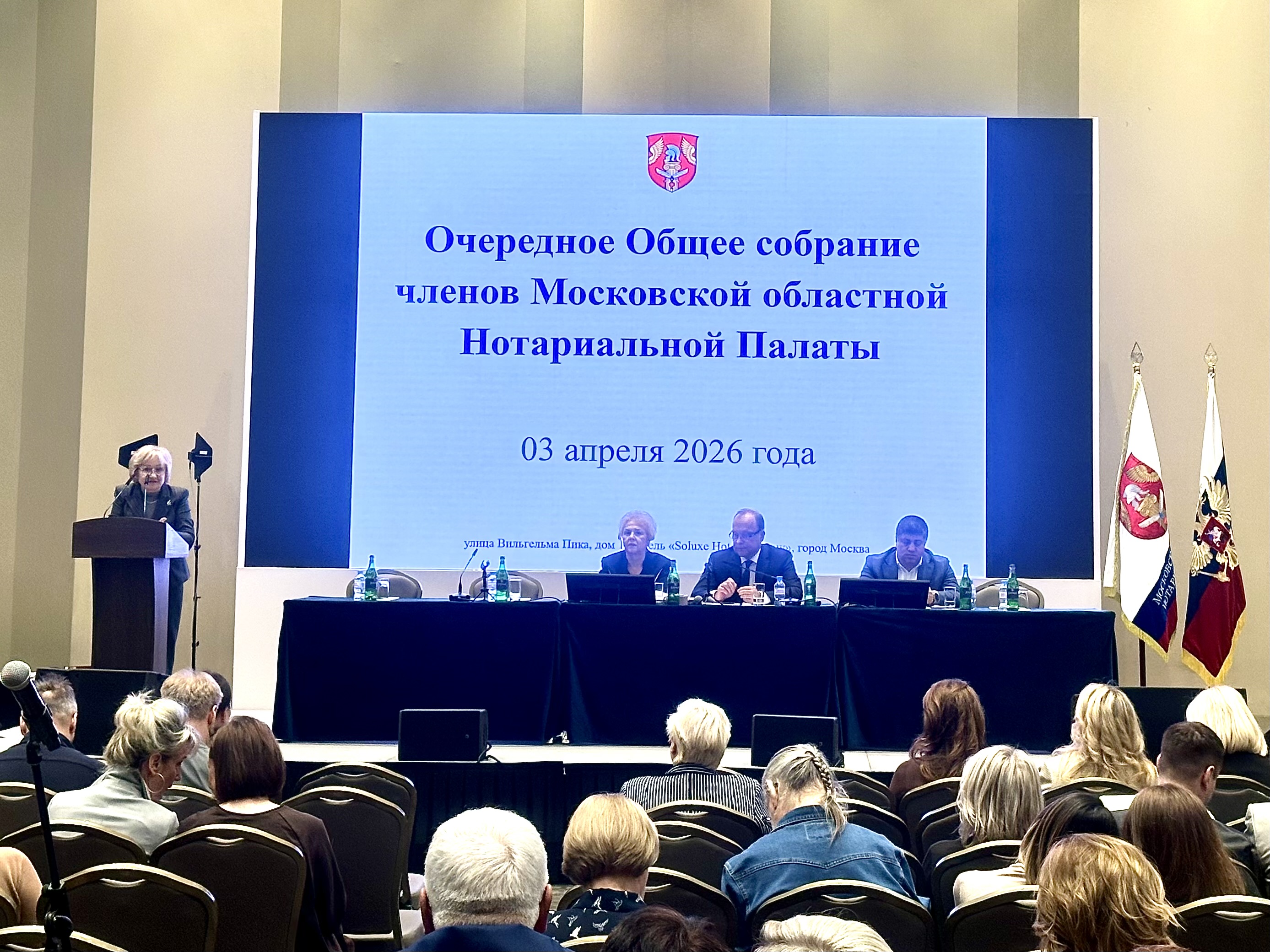 3 апреля 2026 года в отеле, расположенном в Москве, состоялось очередное годовое Общее собрание членов Московской областной Нотариальной Палаты.