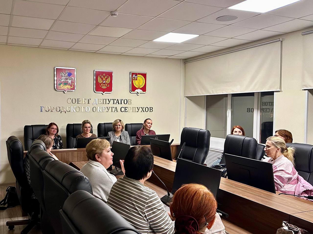 С жителями города Серпухова - опекунами, попечителями, приёмными родителями и представителями многодетных семей, для разъяснения законодательства, а также для получения ответов на вопросы, связанных с защитой имущественных прав ребенка и мерами государственной поддержки приемных семей, встречались нотариус городского округа Серпухов Шаталова Екатерина Михайловна, заведующая «Адвокатской консультацией номер 9» Межреспубликанской коллегии адвокатов - адвокат Волкова Светлана Викторовна, заместитель начальника Окружного управления социального развития Nº 17 Минсопразвития Московской области Переправина Наталья Викторовна, зав. отделом Защиты имущественных и неимущественные прав ребенка Марчук Людмила Николаевна, зав. отделом семьи и детства Бекетова Елена Владимировна.