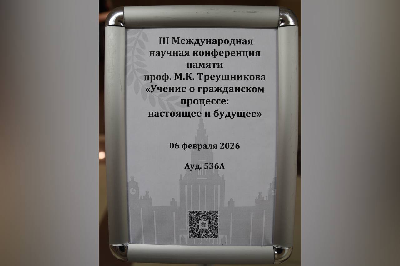 6 февраля 2026 года на Юридическом факультете Московского государственного университета имени М.В. Ломоносова прошла III Международная научная конференция «Учение о гражданском процессе: настоящее и будущее», посвященная выдающемуся ученому-процессуалисту, доктору юридических наук, профессору, заслуженному деятелю науки Российской Федерации Михаилу Константиновичу Треушникову.