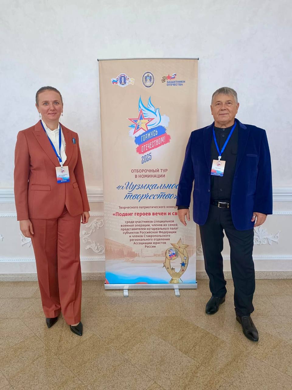 26 сентября 2025 года прошел первый день творческого патриотического конкурса «Подвиг героев вечен и свят», который проходит на базе Нотариальной палаты Ставропольского края. Уникальный в своем роде проект был инициирован Ставропольским региональным отделением Ассоциации юристов России и нотариальной палатой края с участием филиала Государственного фонда поддержки участников специальной военной операции «Защитники Отечества» по Ставропольскому краю.