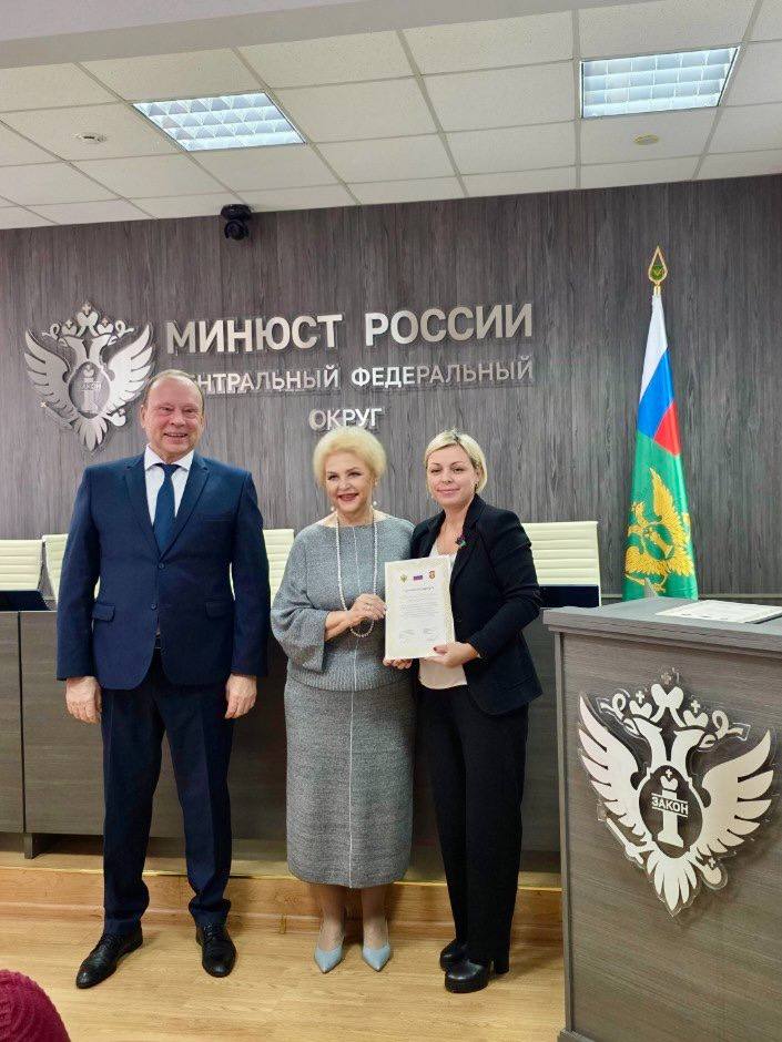 Торжественная церемония состоялась в Управлении Министерства юстиции Российской Федерации по Московской области.